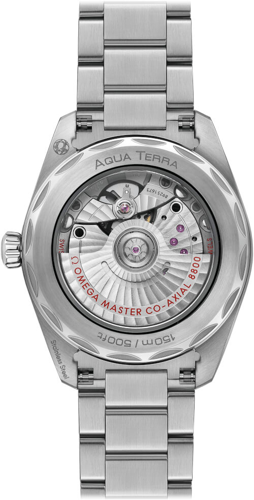 • The movement also features Omegas Co-Axial Escapement which contributes to greater precision, stability & durability. The Co-Axial escapement has less friction & reduces the necessity of lubrication thus reducing the time intervals required between servicing.