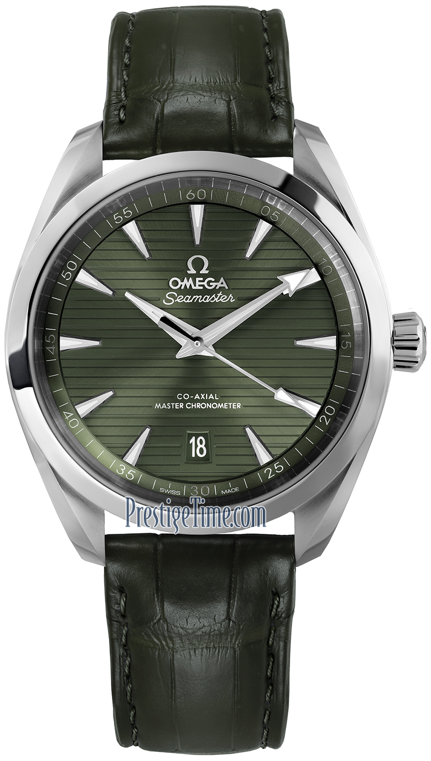 • Green dial with a horizontal linear textured design.