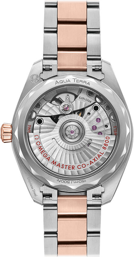 • The movement also features Omegas Co-Axial Escapement which contributes to greater precision, stability & durability. The Co-Axial escapement has less friction & reduces the necessity of lubrication thus reducing the time intervals required between servicing.