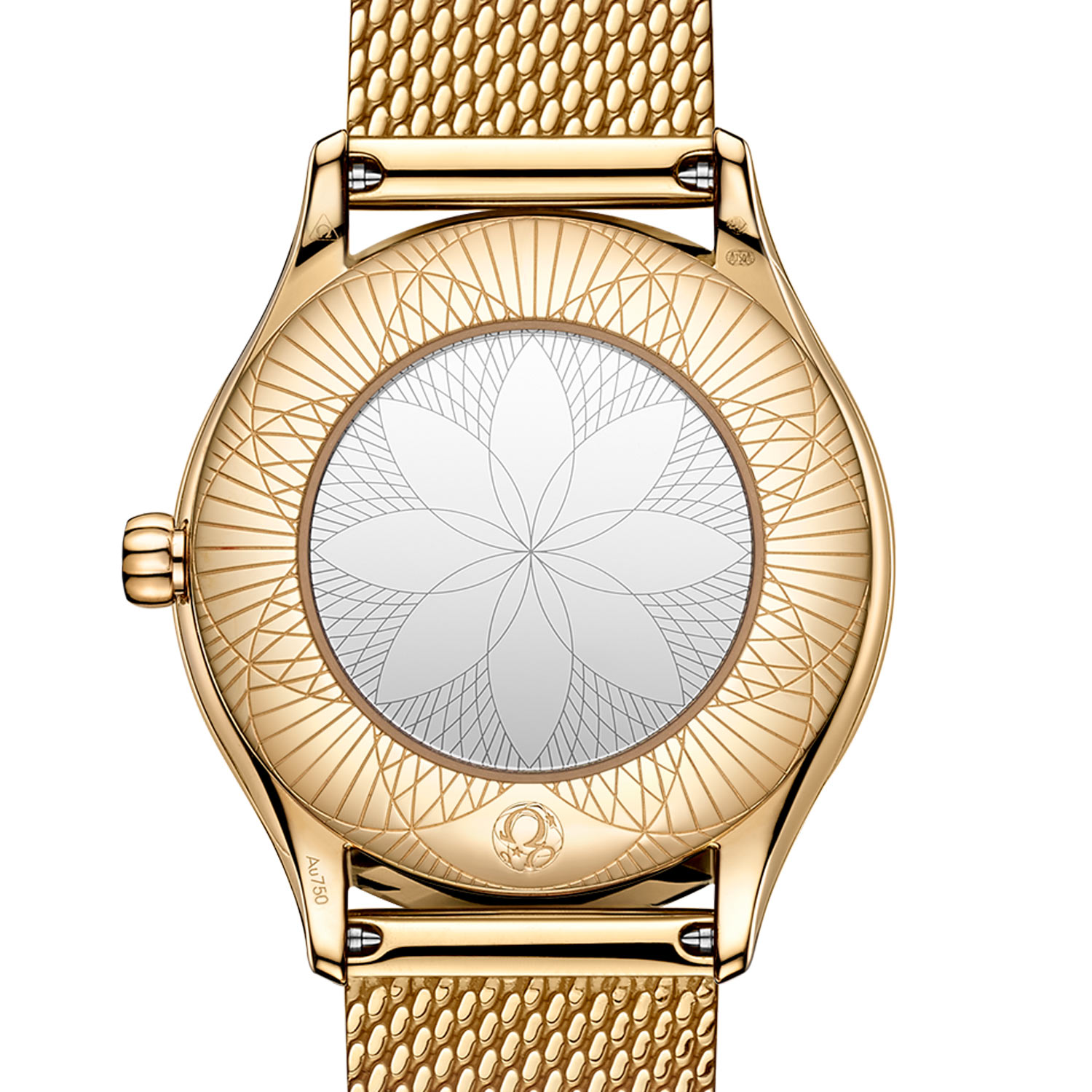 • Mirrored case back with a unique 'Time For Her' engraved pattern.
