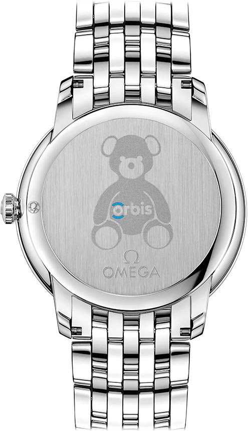 The Omega De Ville Prestige Orbis edition is celebrating Orbis International and their Flying Eye Hospital which brings critical eye care to the world and those who need it most. Omega supports the important work that Orbis is doing by providing a cuddly teddy bear to every young patient. This is the inspiration behind the dial design on this watch.