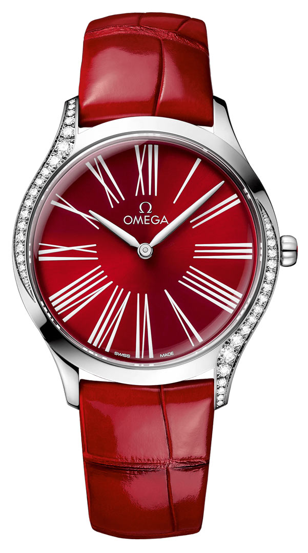 • Lacquered red dial.