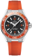 Bezel: uni-directional rotating, orange, stainless steel and ceramic, polished, titanium inner bezel ring, Diving Scale, Luminous starting dot
