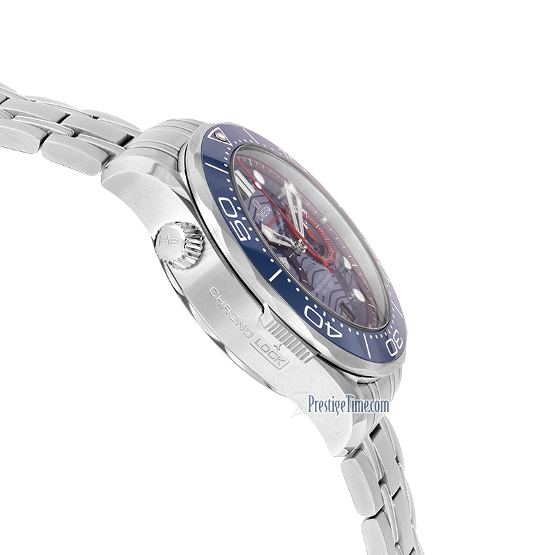 • Included is an addition blue rubber strap with a  tang buckle. Both the bracelet & the strap feature Omega's patented Quick-Change system via an integrated quick-release button.