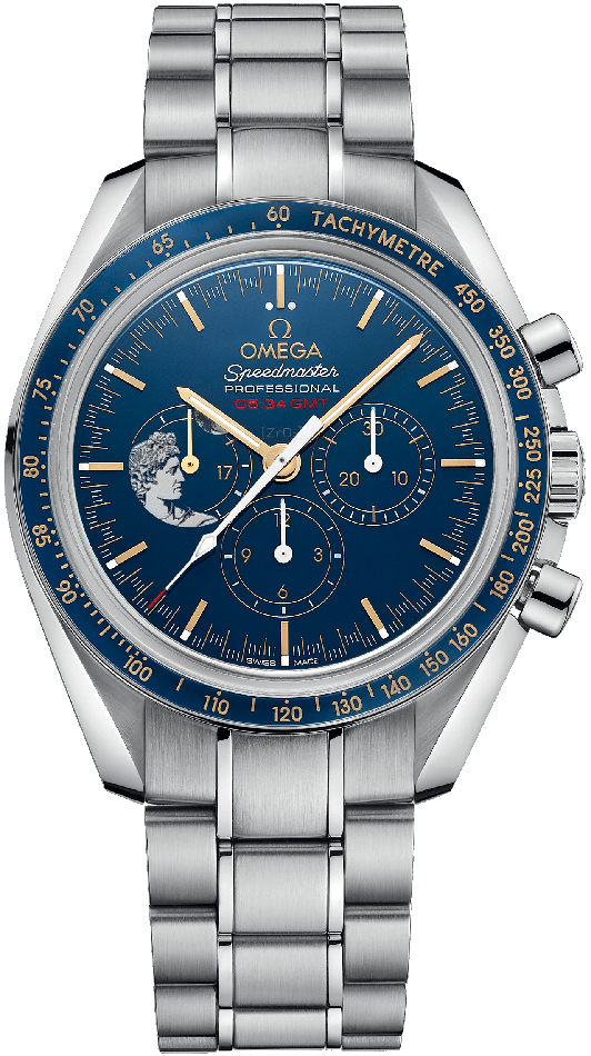 • 9 o'clock sub-dial features a representation of the Apollo and the moon – etched in PVD in a chrome color.