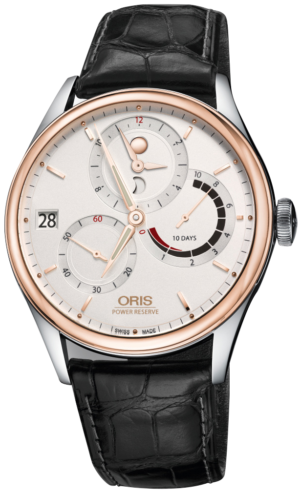 • Oris Caliber 112 is a manual wind movement that beats at 21'600 vph. It contains 40 Jewels & thanks to a 1.8m long mainspring, it has an impressive power reserve of approximately 240 hours/10 days.