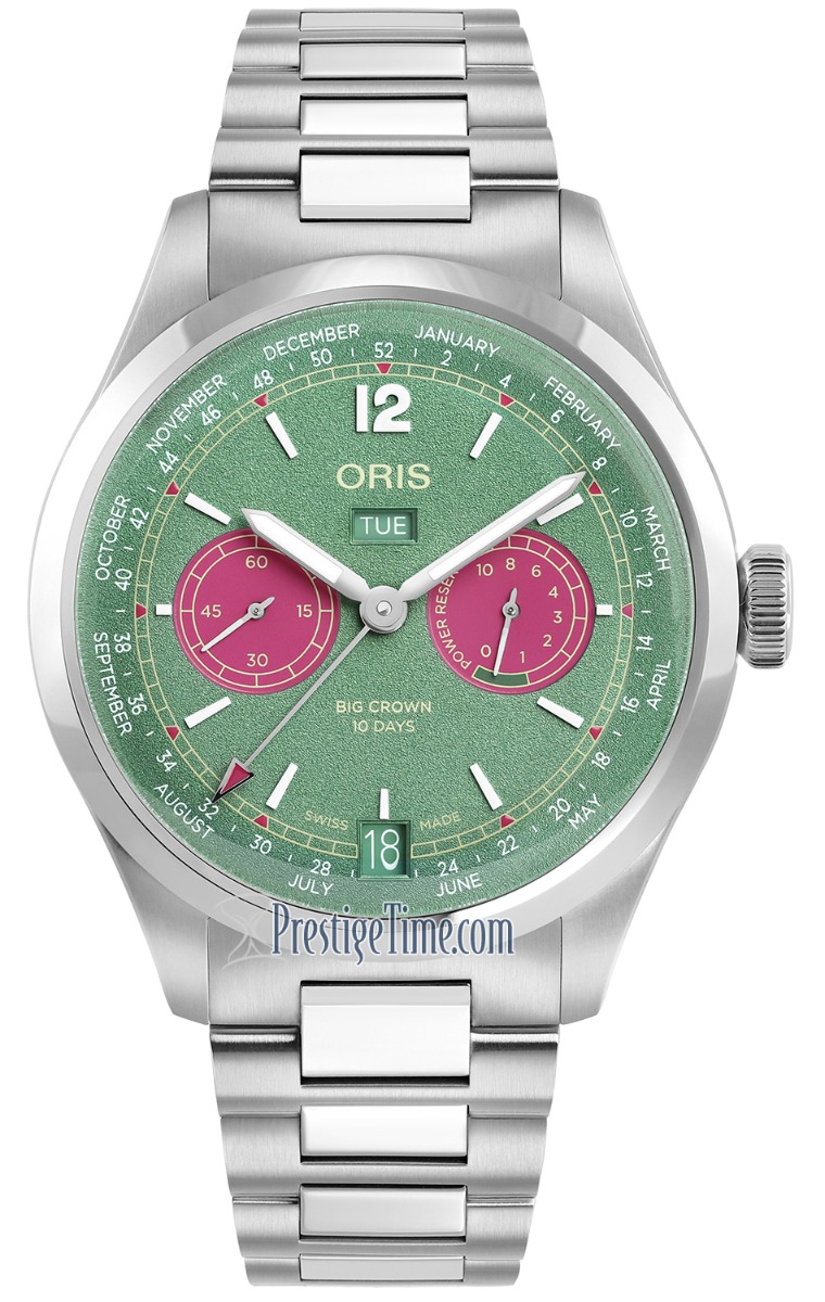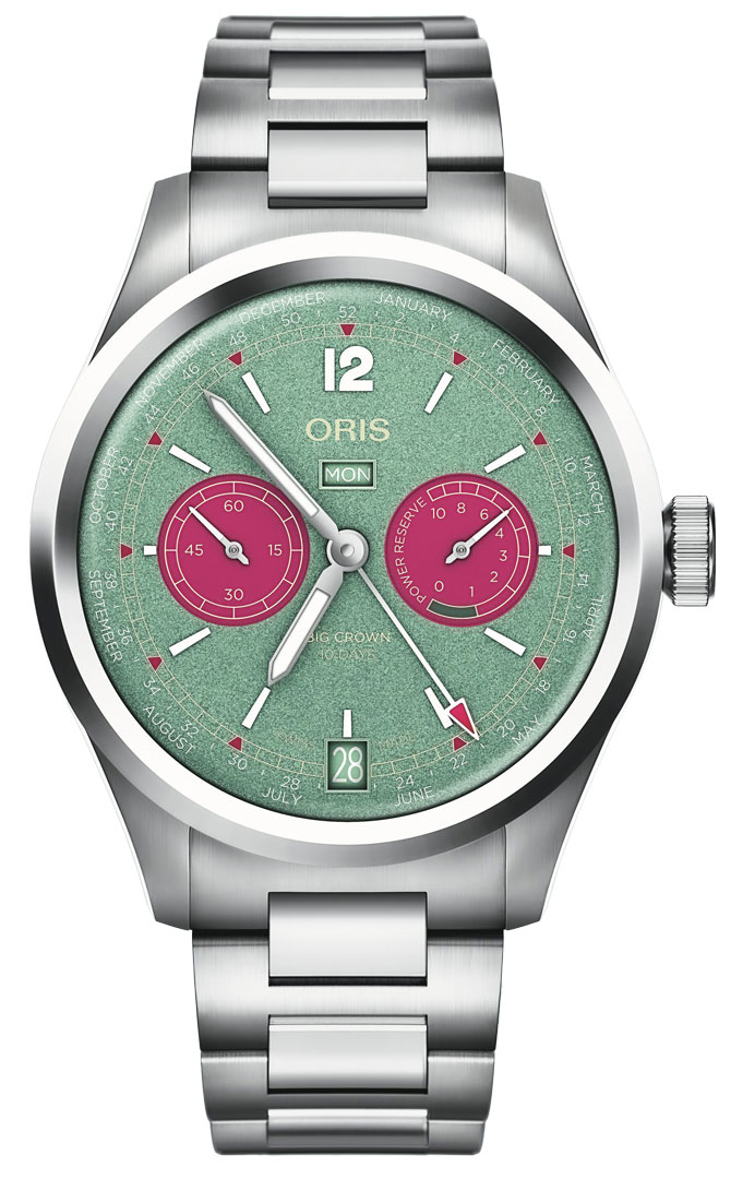 Calibre: Oris calibre 113, beats at 3Hz/21600 vph, 40 jewels, power reserve of 240 hours (10 days)
