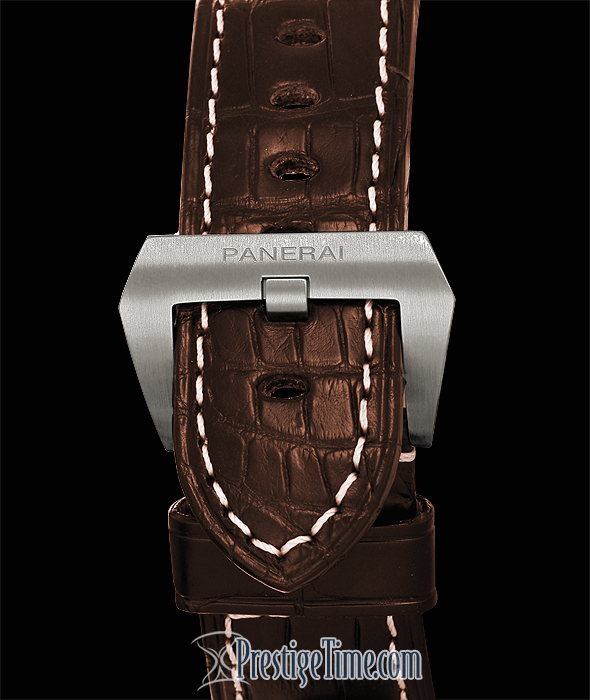 • Panerai mechanical manual wound caliber OP X movement with a swan neck regulator. Beats at  21,600 vph, contains 17 jewels & has an approximate 56 hour Power Reserve. Cotes de Geneve decoration on the bridges.