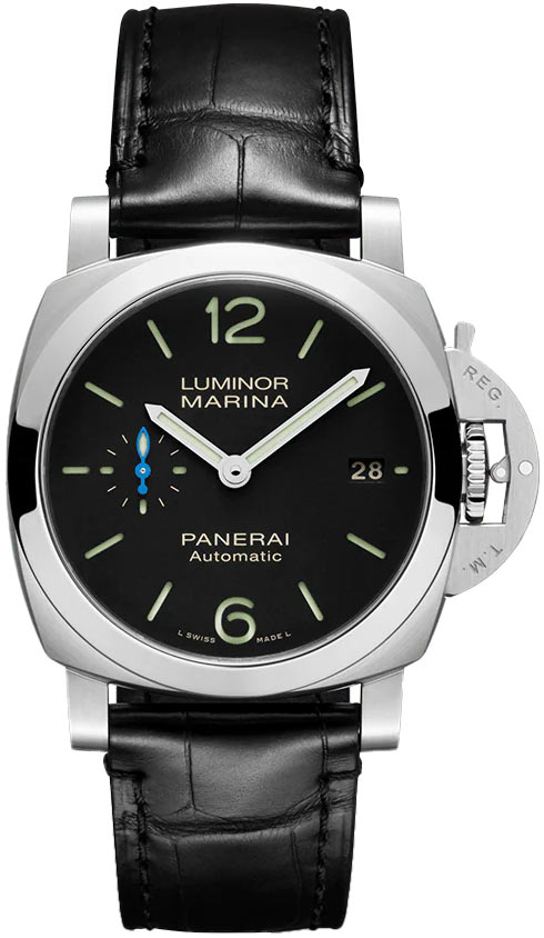 • Small seconds sub-dial located at the 9 o'clock position, with luminous filled blue hand.