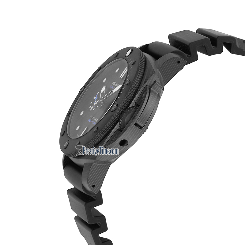 • Black carbotech uni-directional bezel ring with 60 minute diving scale & luminous starting dot.
