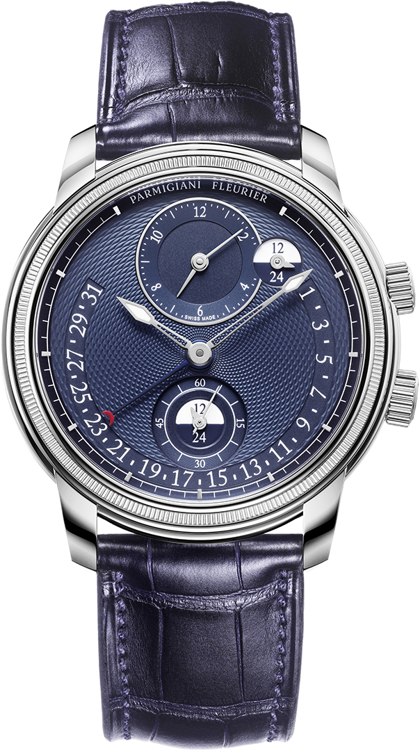 • Day/Night indicator for the main time-zone is featured via a small sub-dial at the center of the small seconds sub-dial located at the 6 o'clock position.