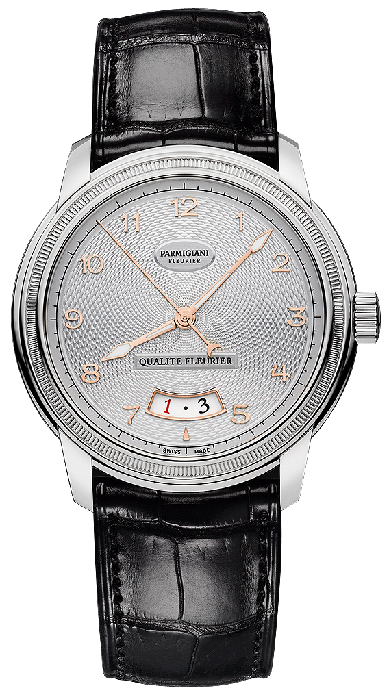 • Parmigiani COSC certified caliber PF331-qf, beats at 28,800 (4Hz) vph, contains 32 Jewels & has an approximate power reserve of 55 hours.