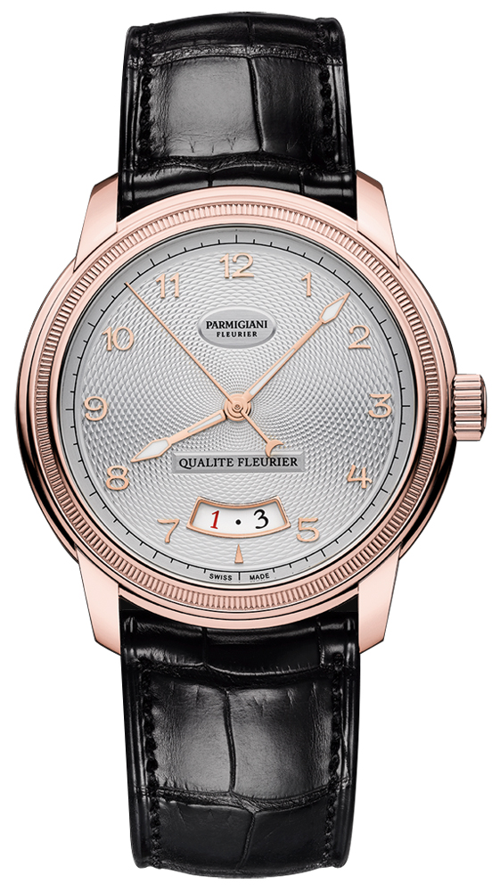 • Parmigiani COSC certified caliber PF331-qf, beats at 28,800 (4Hz) vph, contains 32 Jewels & has an approximate power reserve of 55 hours.