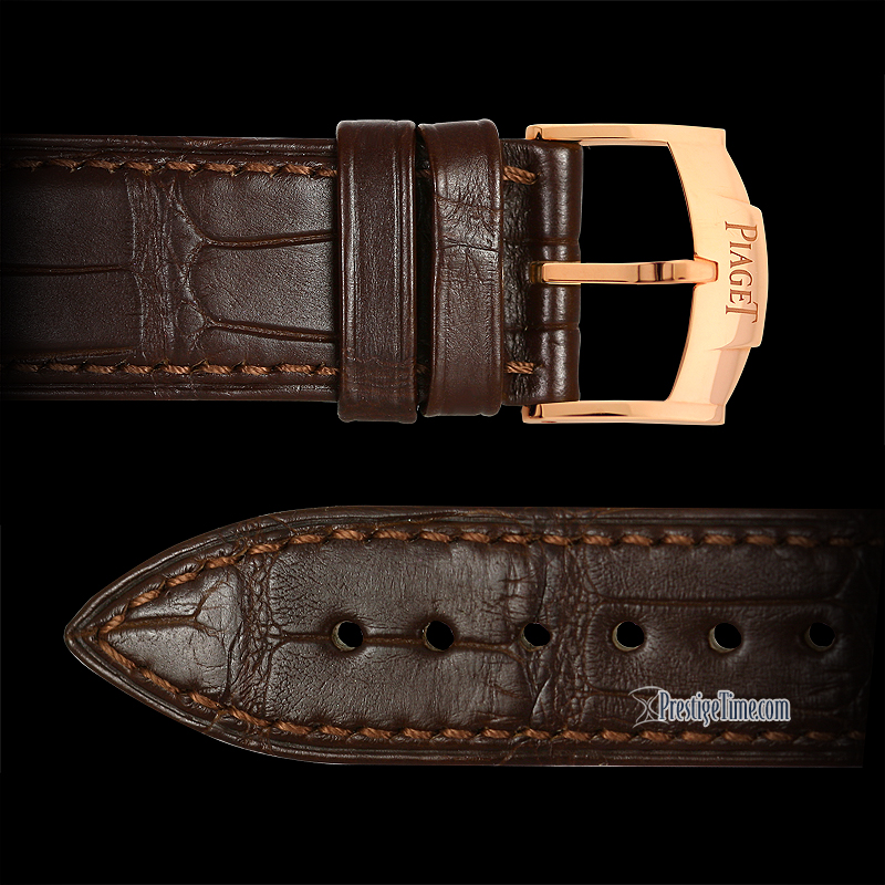 • Applied polished rose gold hour markers & featuring the Piaget Coates of arms in solid 18kt rose gold at the 12 o'clock position.