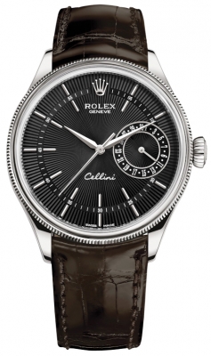 Mens Rolex 50519 Black Brown Strap Cellini Date 39mm Watch