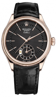 Mens Rolex 50525 Black Black Strap Cellini Dual Time 39mm Watch