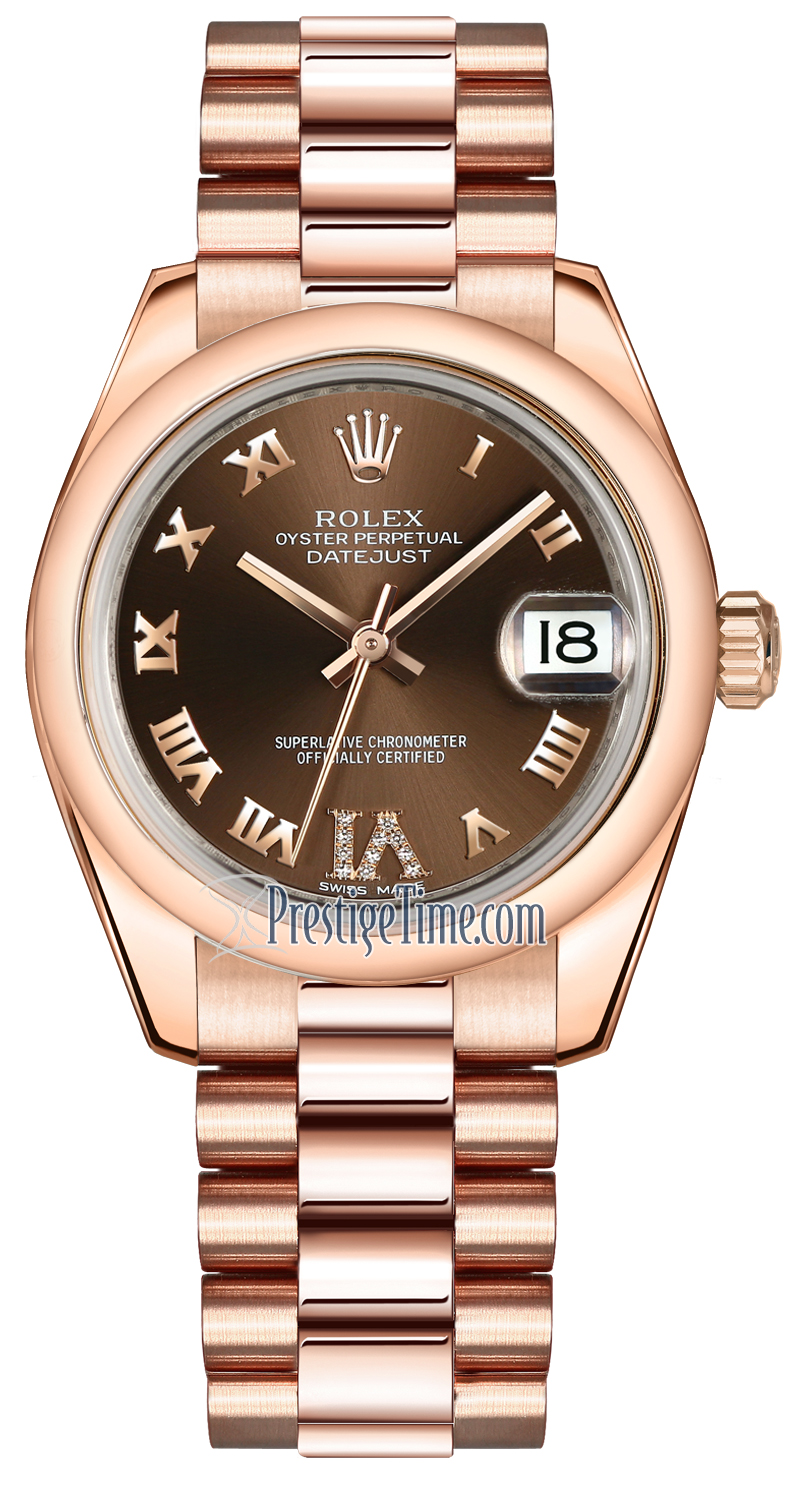 Ladies Rolex 178245 Chocolate VI Roman President Datejust 31mm Everose Gold Watch
