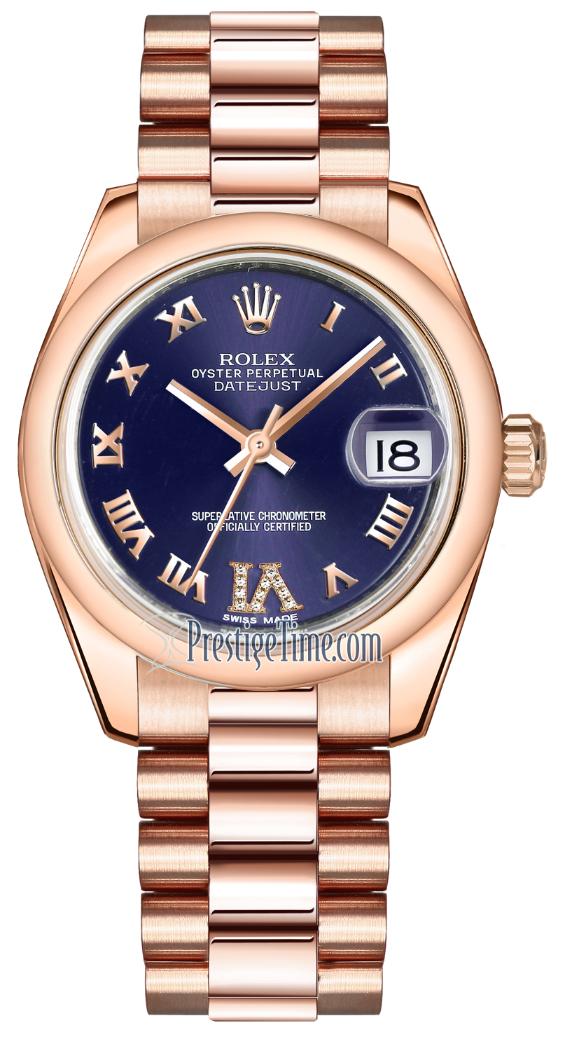 Ladies Rolex 178245 Purple VI Roman President Datejust 31mm Everose Gold Watch