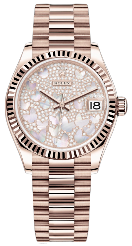 Ladies Rolex 278275 Diamond Paved President Datejust 31mm Everose Gold Watch