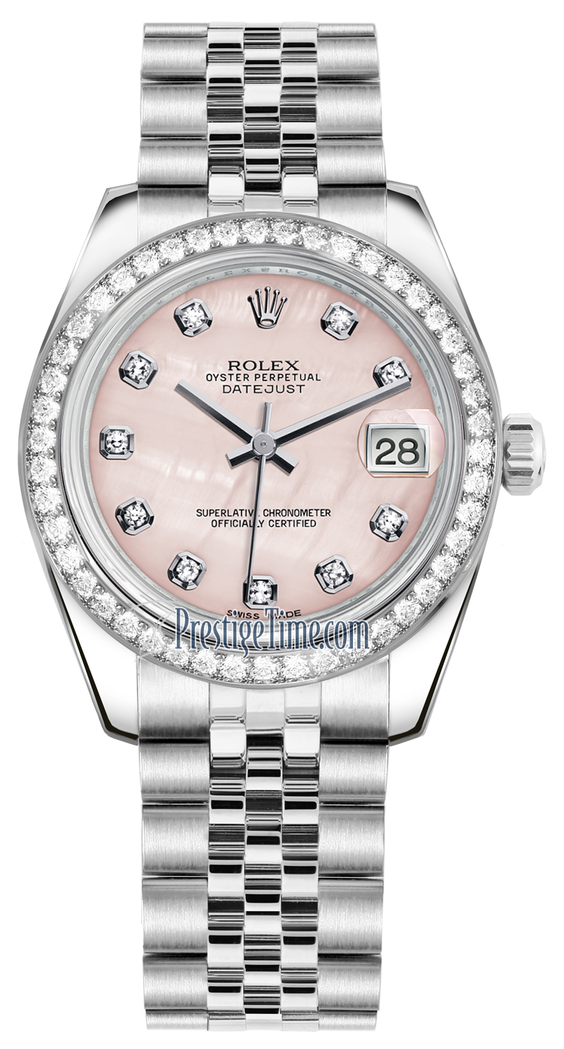 Ladies Rolex 178384 Pink MOP Diamond Jubilee Datejust 31mm Stainless Steel Watch