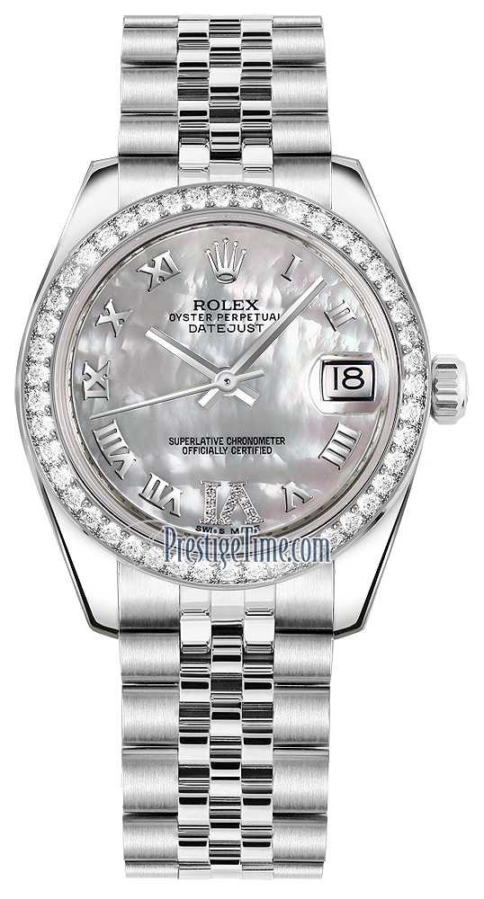 Ladies Rolex 178384 White MOP VI Roman Jubilee Datejust 31mm Stainless Steel Watch
