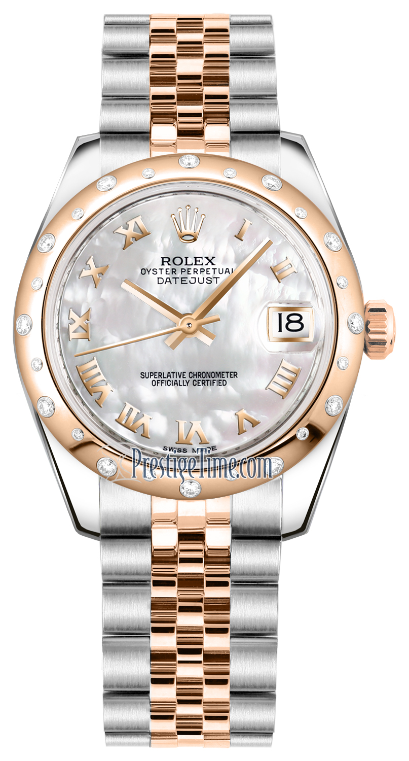 Ladies Rolex 178341 White MOP Roman Jubilee Datejust 31mm Stainless Steel and Rose Gold Watch