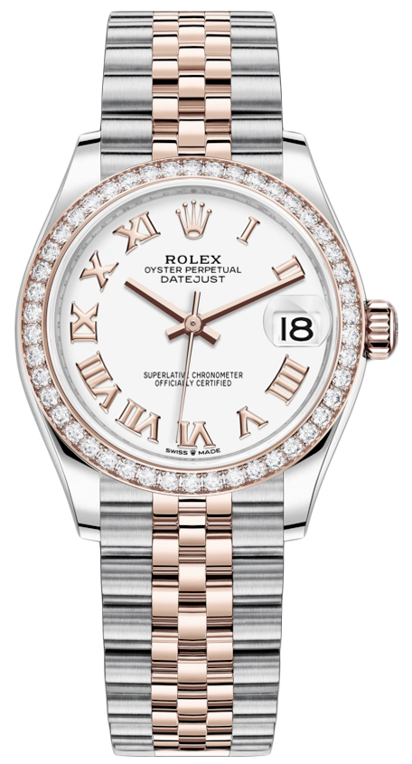 Ladies Rolex 278381rbr White Roman Jubilee Datejust 31mm Stainless Steel and Rose Gold Watch