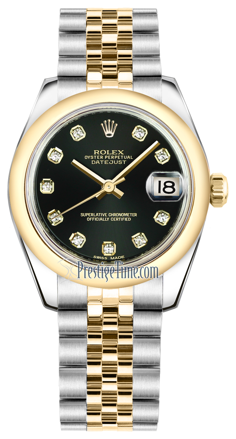 Ladies Rolex 178243 Black Diamond Jubilee Datejust 31mm Stainless Steel and Yellow Gold Watch