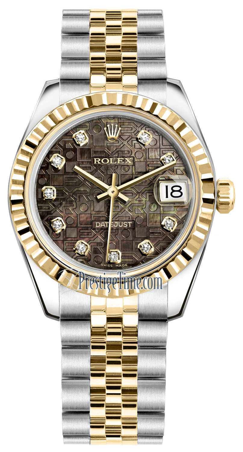 Ladies Rolex 178273 Jubilee Black MOP Diamond Jubilee Datejust 31mm Stainless Steel and Yellow Gold Watch