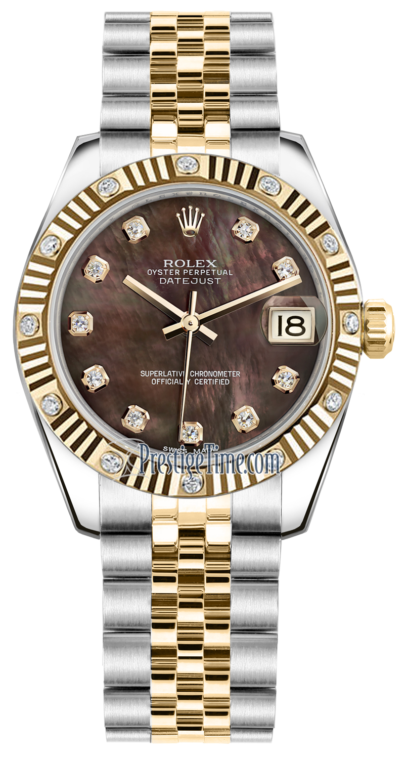 Ladies Rolex 178313 Black MOP Diamond Jubilee Datejust 31mm Stainless Steel and Yellow Gold Watch