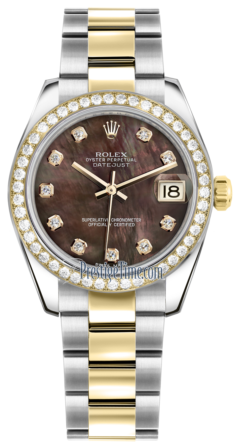 Ladies Rolex 178383 Black MOP Diamond Oyster Datejust 31mm Stainless Steel and Yellow Gold Watch