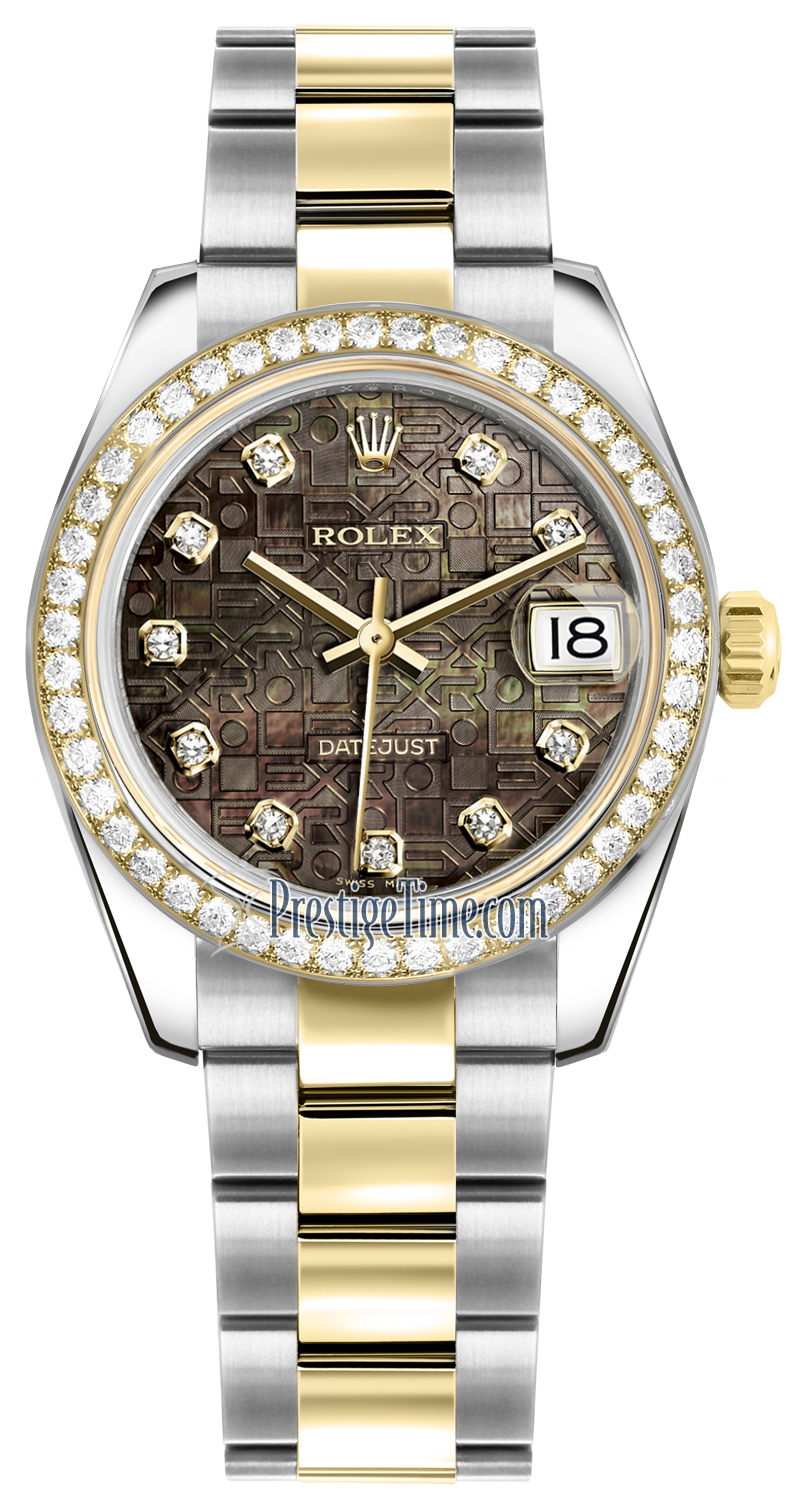 Ladies Rolex 178383 Jubilee Black MOP Diamond Oyster Datejust 31mm Stainless Steel and Yellow Gold Watch