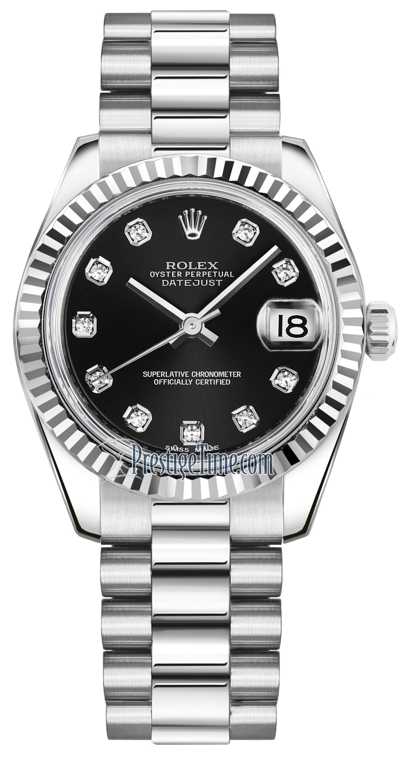 Ladies Rolex 178279 Black Diamond President Datejust 31mm White Gold Watch