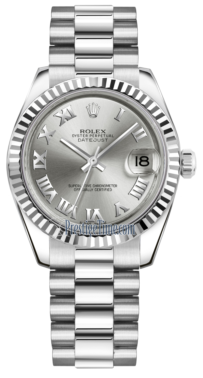 Ladies Rolex 178279 Rhodium Roman President Datejust 31mm White Gold Watch