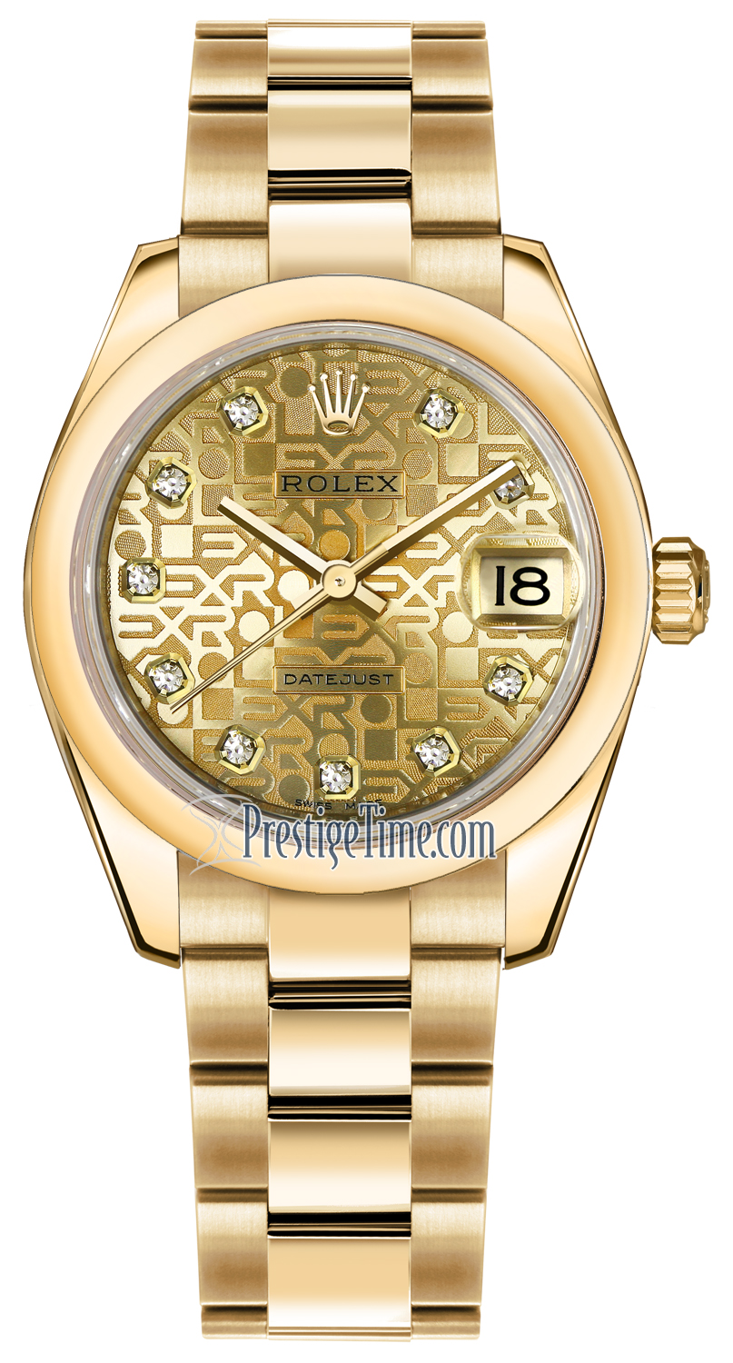 Ladies Rolex 178248 Champagne Jubilee Diamond Oyster Datejust 31mm Yellow Gold Watch