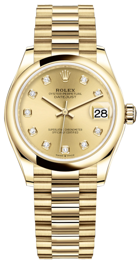 Ladies Rolex 278248 Champagne Diamond President Datejust 31mm Yellow Gold Watch