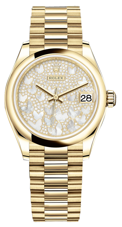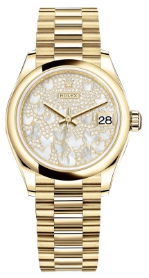 Ladies Rolex 278248 Diamond Pave President Datejust 31mm Yellow Gold Watch