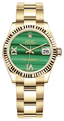 Ladies Rolex 278278 Malachite Diamond Oyster Datejust 31mm Yellow Gold Watch