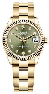 Ladies Rolex 278278 Olive Green Diamond Oyster Datejust 31mm Yellow Gold Watch