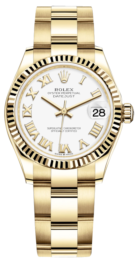 Ladies Rolex 278278 White Roman Oyster Datejust 31mm Yellow Gold Watch
