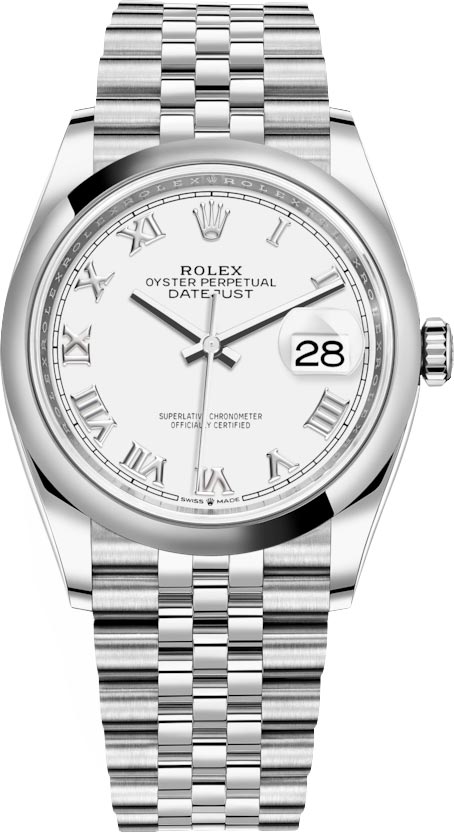 Midsize Rolex 126200 White Roman Jubilee Datejust 36mm Stainless Steel Watch