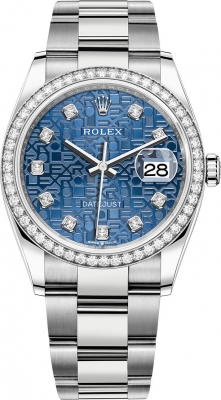 Midsize Rolex 126284rbr Jubilee Blue Diamond Oyster Datejust 36mm Stainless Steel Watch