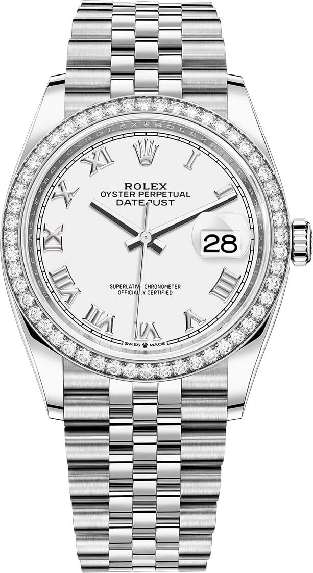 Midsize Rolex 126284rbr White Roman Jubilee Datejust 36mm Stainless Steel Watch