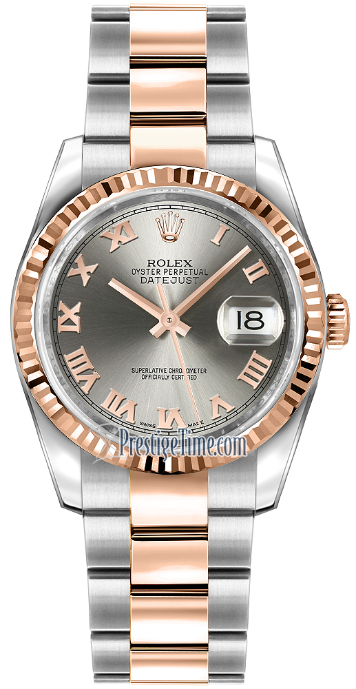 Midsize Rolex 116231 Steel Roman Oyster Datejust 36mm Stainless Steel and Rose Gold Watch
