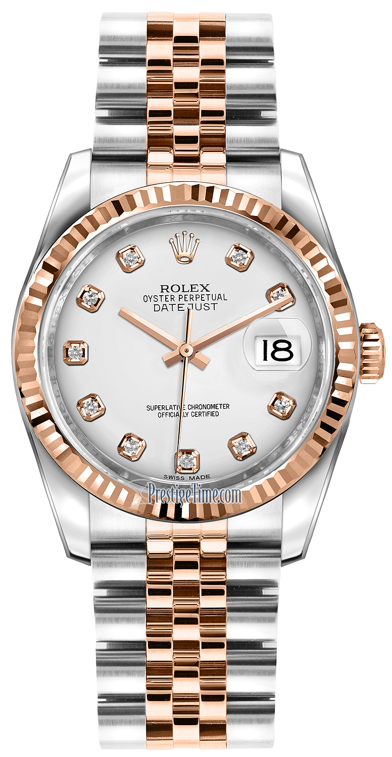 Midsize Rolex 116231 White Diamond Jubilee Datejust 36mm Stainless Steel and Rose Gold Watch