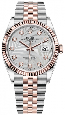 Ladies Rolex 126201 Silver Fluted Diamond Oyster Datejust 36mm Stainless Steel and Rose Gold Watch