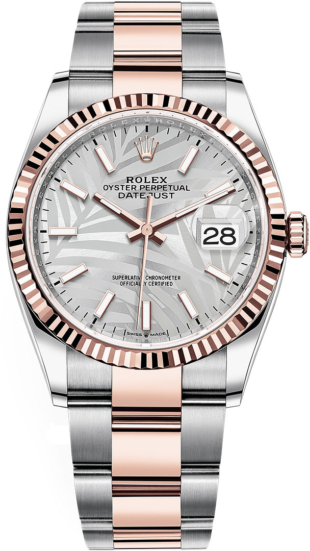 Ladies Rolex 126231 Silver Palm Oyster Datejust 36mm Stainless Steel and Rose Gold Watch