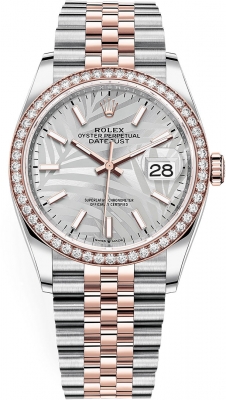 Ladies Rolex 126281rbr Silver Palm Jubilee Datejust 36mm Stainless Steel and Rose Gold Watch