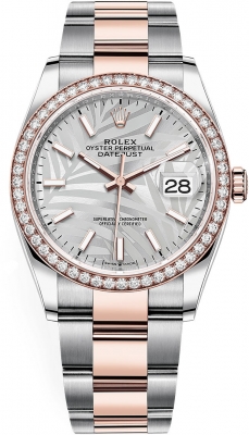 Ladies Rolex 126281rbr Silver Palm Oyster Datejust 36mm Stainless Steel and Rose Gold Watch