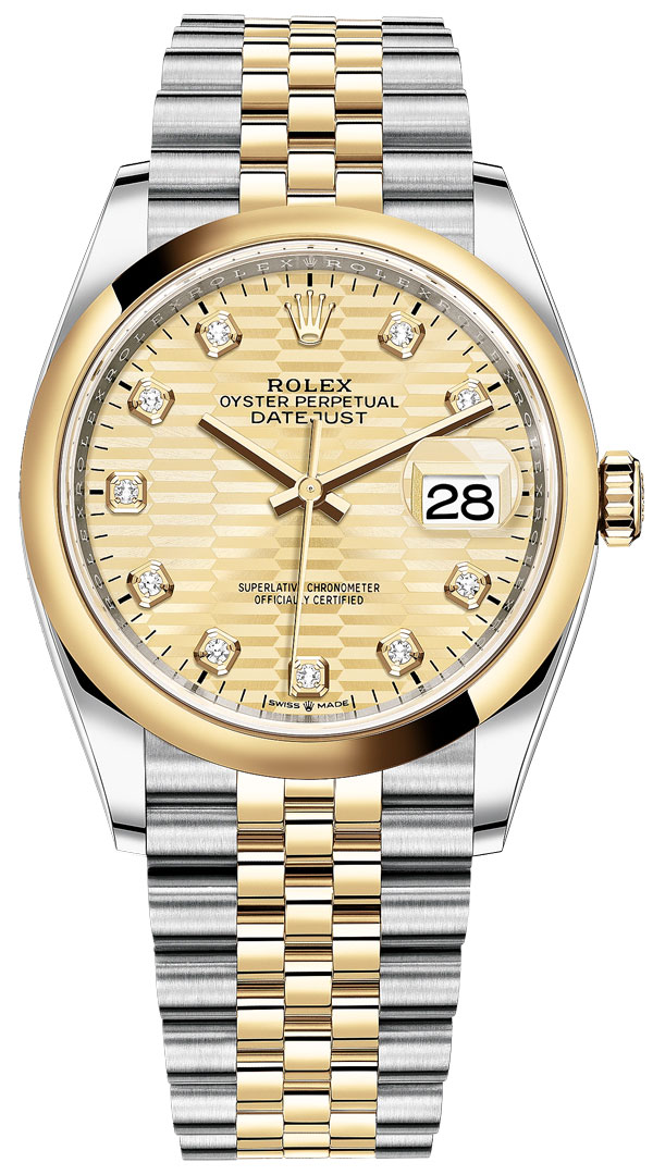 Ladies Rolex 126203 Golden Fluted Diamond Jubilee Datejust 36mm Stainless Steel and Yellow Gold Watch